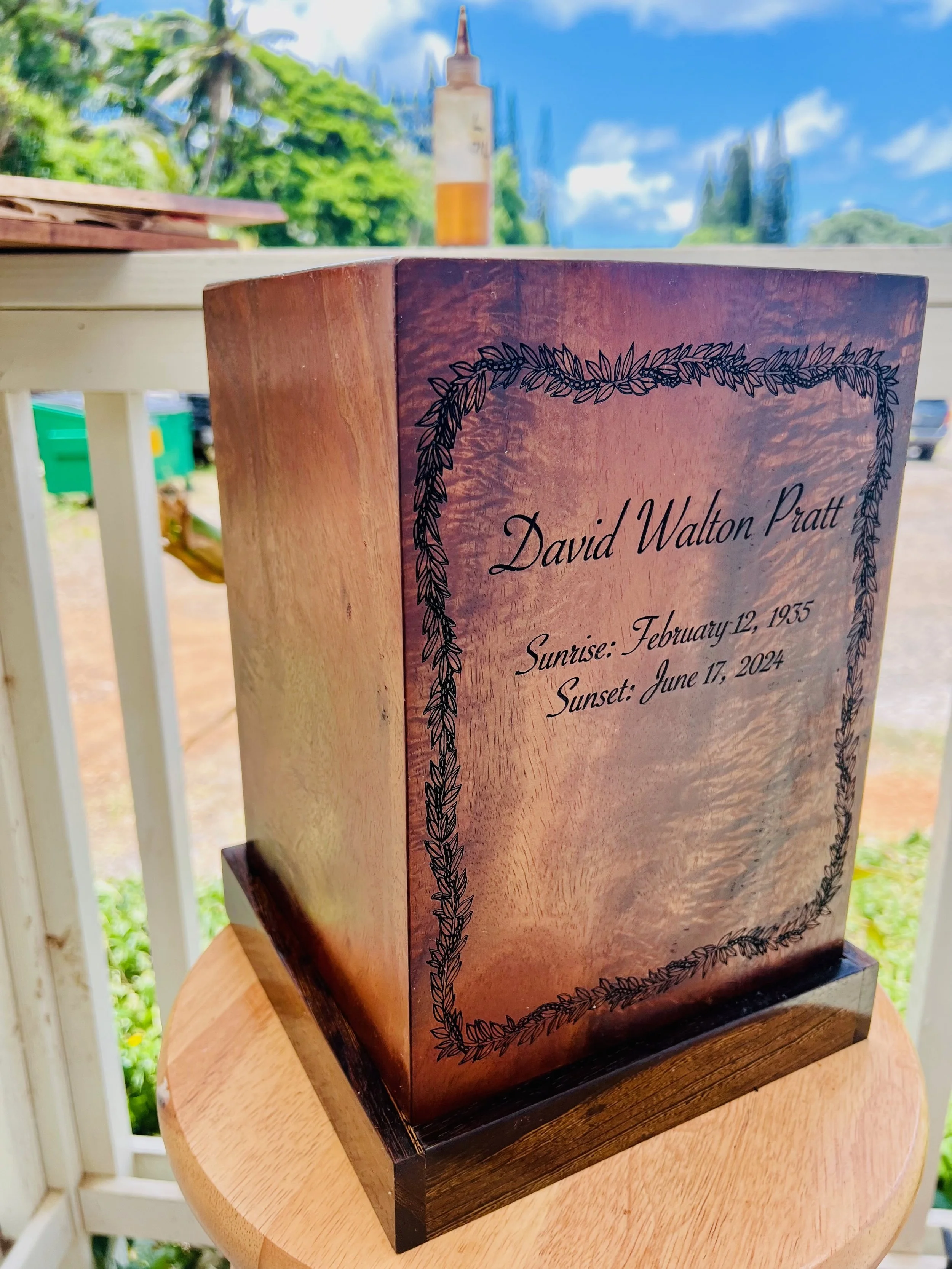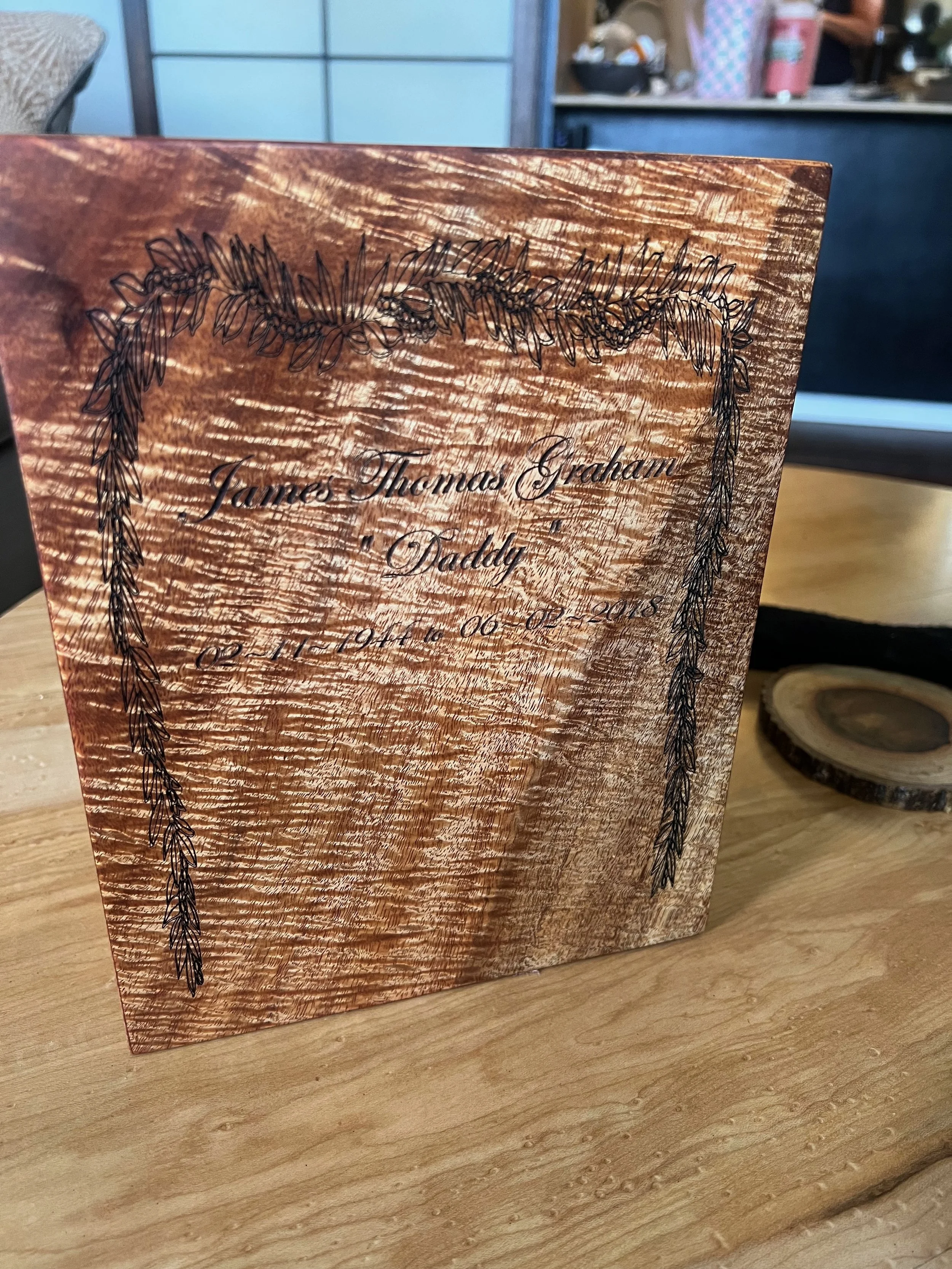 We can create custom urns with various wood species, dimensions, and personalized engravings. Below are some examples of urn sizes, but we are happy to create differing sizes according to your needs.
